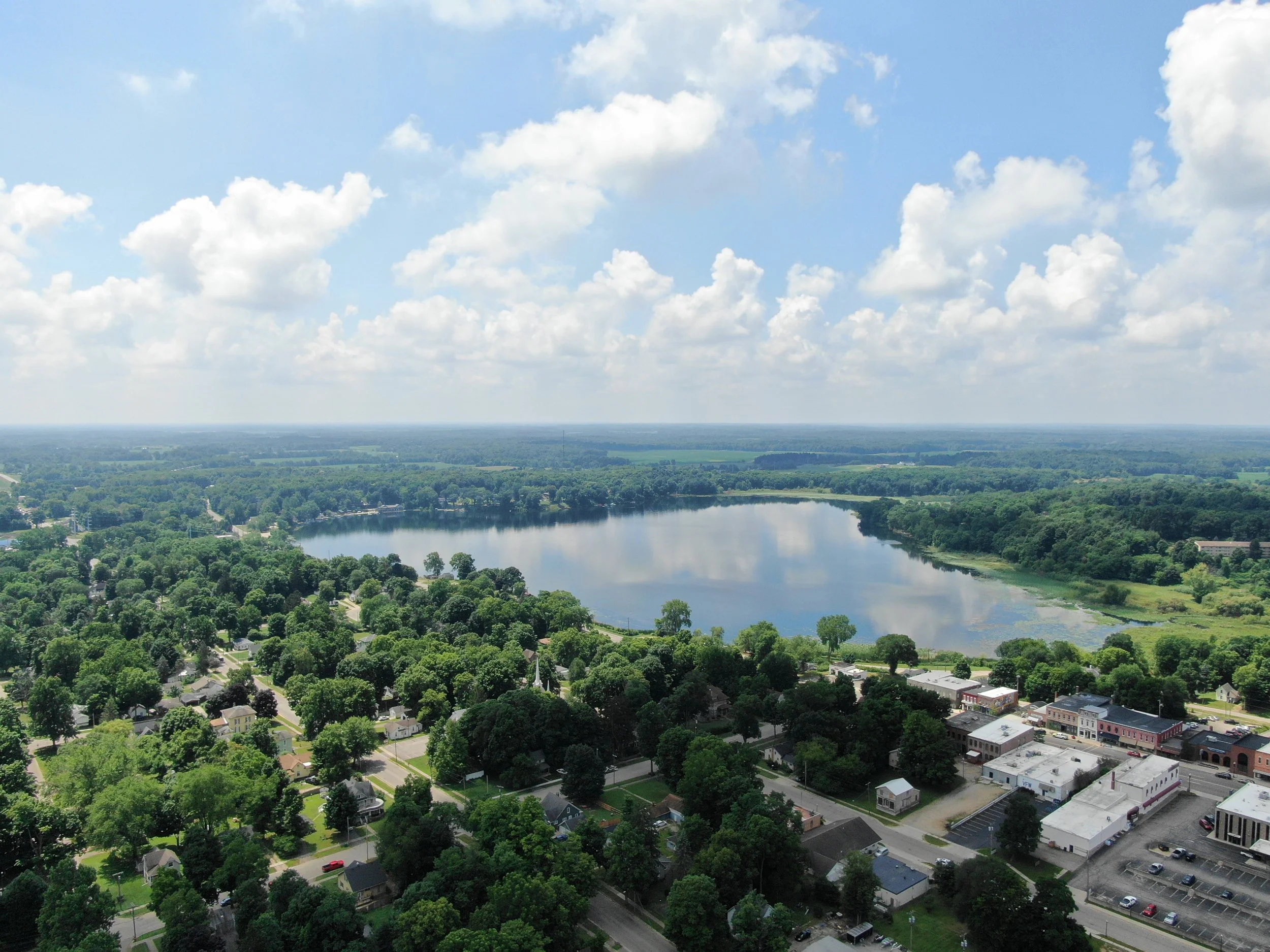 Gorgeous shot of downtown Cassopolis overlooking Stone Lake.